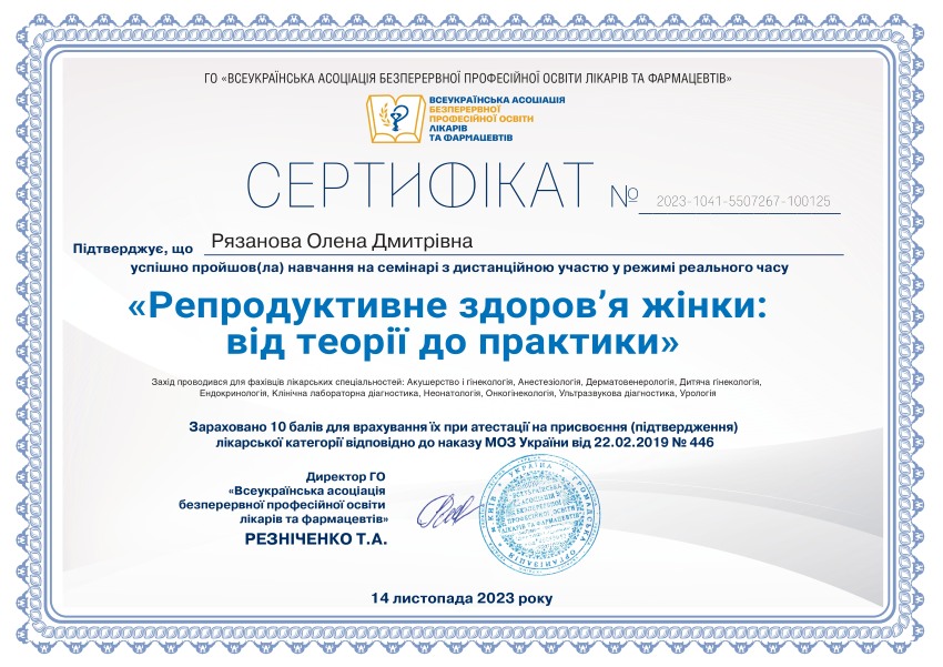 Таранова Юлія Володимирівна - лікарка-гінеколог другої категорії, спеціалізується на сучасних методах діагностики і лікування репродуктивних органів жінок. Велике значення надає профілактиці запальних їх захворювань, в тому числі інфекційної природи. Юлія Володимирівна постійно підвищує свій фаховий рівень, здобуває нові знання і навички у роботі з сучасним обладнанням для здійснення малоінвазивних процедур у сфері гінекології.