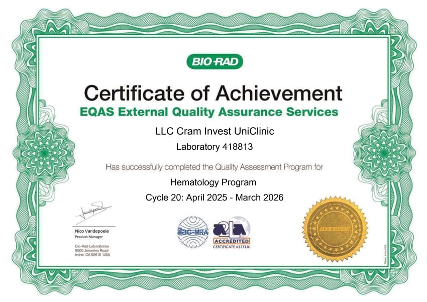 гарантируются современными методами лабораторной диагностики и международной системой качества ISO, стандартам которой отвечает каждый этап работы лаборатории UniClinic.