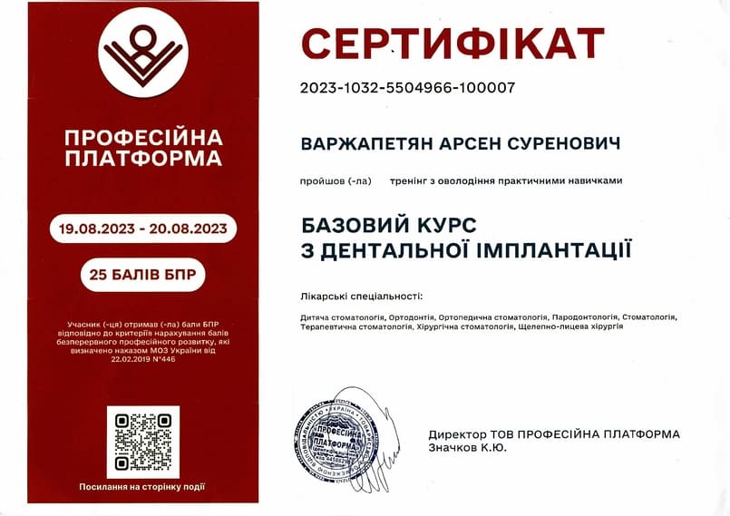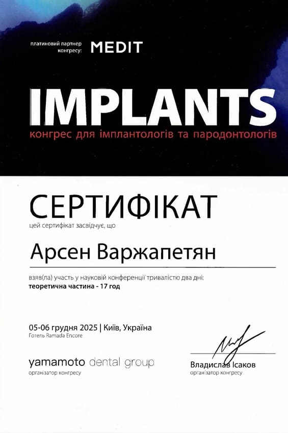 - Курс “Implants”, г.Киев, 2025г.