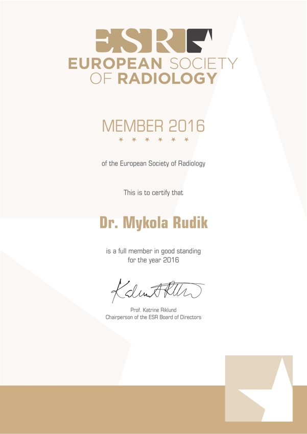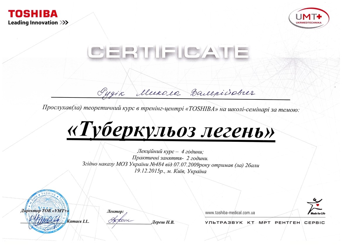 Доктор Рудік - лікар-рентгенолог, кандидат медичних наук. Микола Валерійович досконало володіє методами променевої діагностики за спеціалізацією комп'ютерна томографія. Він виконує комп’ютерно-томографічні дослідження головного мозку, органів грудної клітини, черевної порожнини, заочеревинного простору, сечовидільної системи; проводить комп’ютерно-томографічні обстеження судин нижніх кінцівок, судин шиї та головного мозку, дослідження кісток.