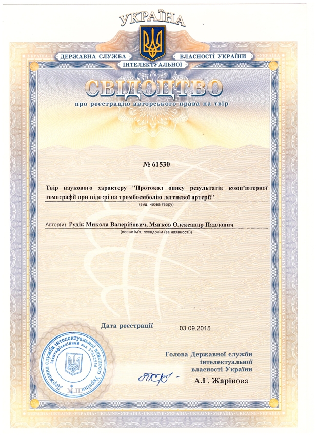 За участю Рудіка Миколи Валерійовича перше в Україні розроблено та впроваджено в практику спосіб розрахунку обсягу ураження судинного русла легень та кількісну оцінку ступені тяжкості тромбоемболії легеневої артерії.
